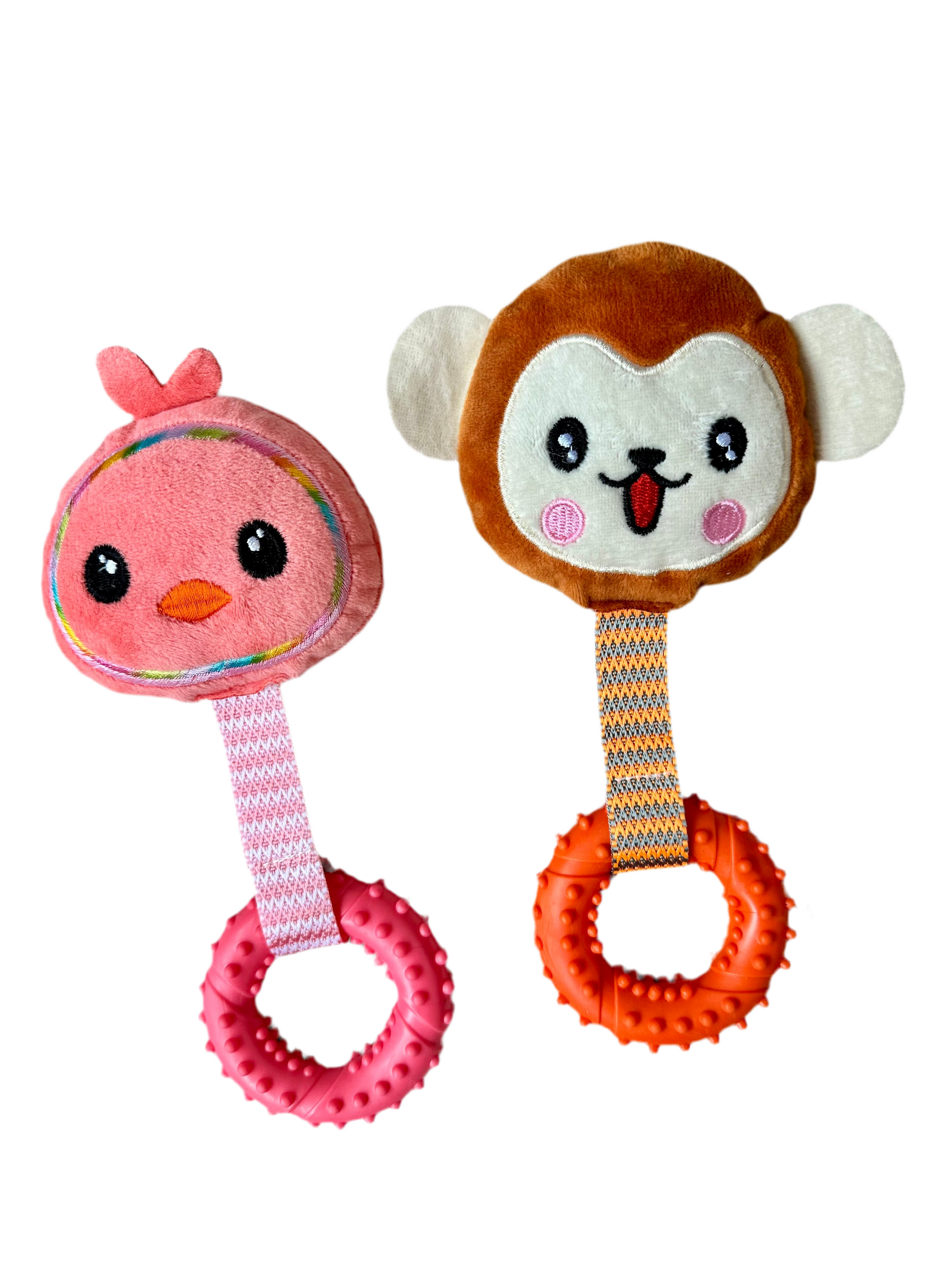 Pluche Hondenspeeltje met Bijtring – Kuikentje of Aapje
