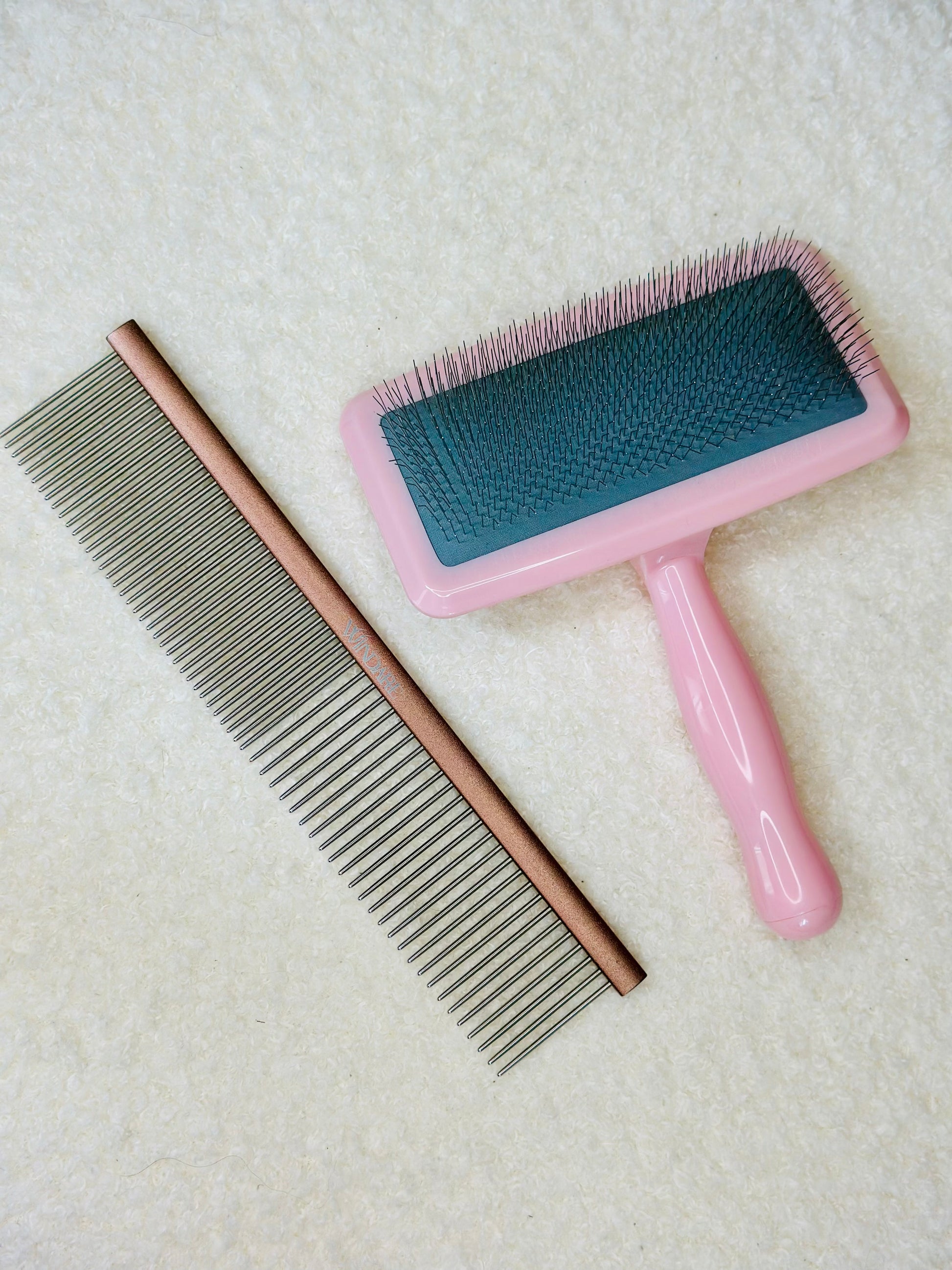 Zupfbürste der Marke Windare. Der Pinsel ist sehr leicht und einfach zu bedienen. Es entfernt Verfilzungen und abgestorbene Haare sowohl vom Ober- als auch vom Unterfell. Auch in Mintgrün erhältlich.