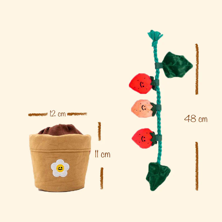 Verstop brokjes of snacks in de pot en tussen de aardbeitjes. Laat jouw hond zoeken, trekken en ontdekken. Gebruik het speeltje dagelijks voor mentale uitdaging en een gelukkige, tevreden hond.