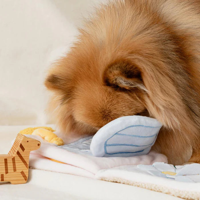 Verstop traktaties tussen de pagina’s en laat je hond zijn natuurlijke snuffelinstinct gebruiken. Dit snuffelboek combineert nosework, piepgeluid en knisperende elementen, wat zorgt voor een complete zintuiglijke speelervaring.