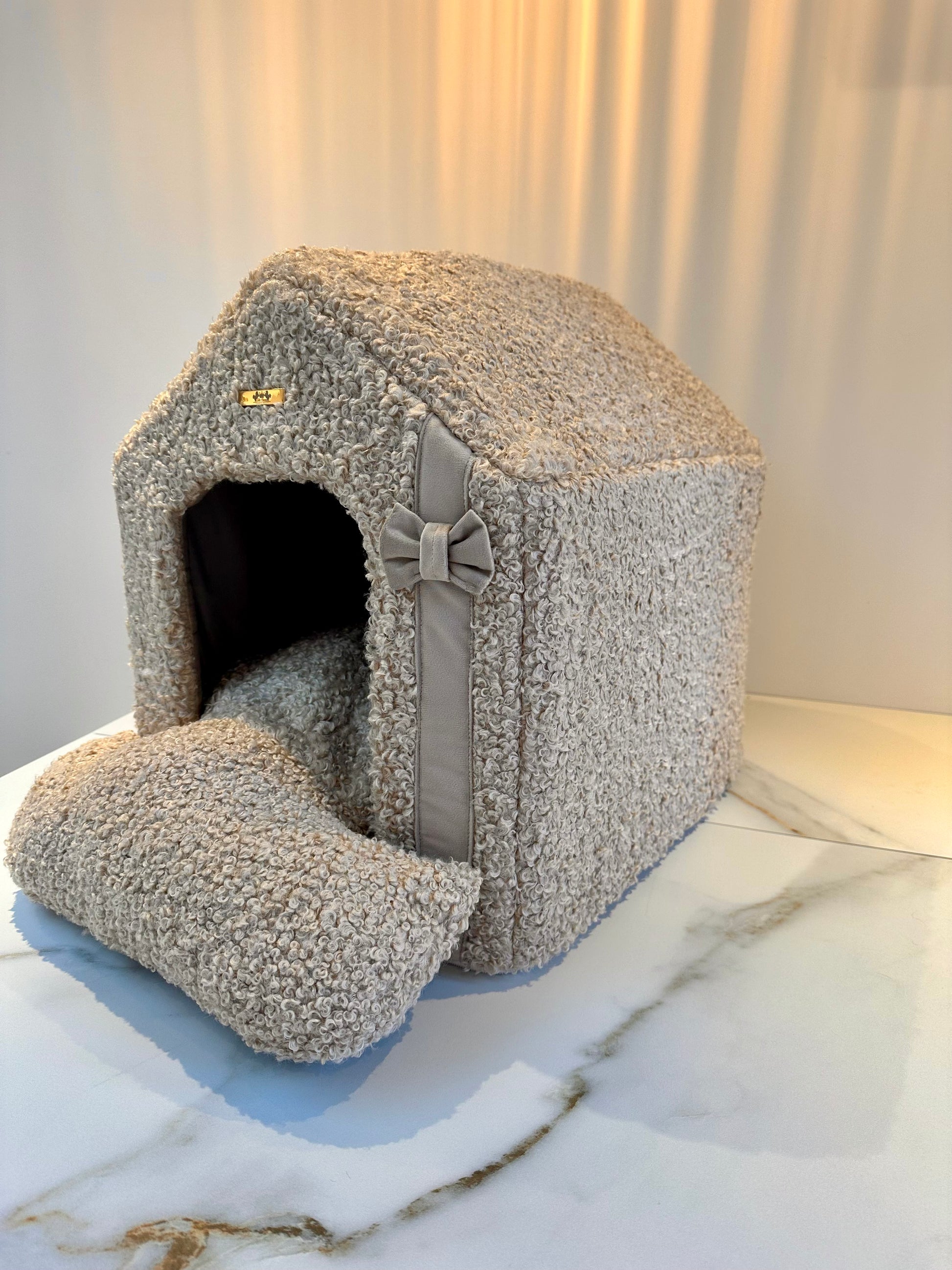 Het huisje is bekleed met een buitenkant van teddy stof, wat zorgt voor een zachte, warme en moderne uitstraling. Teddy staat bekend om zijn fluffy textuur en cosy gevoel, waardoor dit huisje niet alleen praktisch is, maar ook een echte blikvanger vormt in elke woonkamer of slaapkamer. De binnenkant van zachte velvet stof biedt ultiem comfort. Hierdoor voelt het huisje warm en geborgen aan, ideaal voor honden of katten die graag een knus plekje opzoeken.