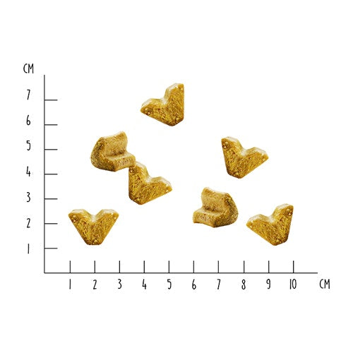 Elke hond is uniek en de optimale voedingshoeveelheden variëren sterk, ze zijn afhankelijk van factoren zoals leeftijd, activiteit, stofwisseling en omgeving. Als uitgangspunt raden wij aan om te beginnen zoals aangegeven in de voedingstabel op de verpakking en zo nodig deze aan te passen. Als de hond overgewicht vertoont, verminder de voeding met 10%. Als de hond ondergewicht vertoont, verhoog de voeding dan met 10%. Ga zo verder tot het juiste gewicht bereikt is. Zorg ook altijd voor voldoende schoon drinkwater.